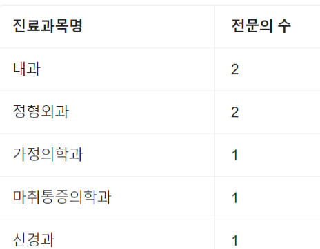 진료과목명 전문의 수 재활의학과 4 가정의학과 1 |