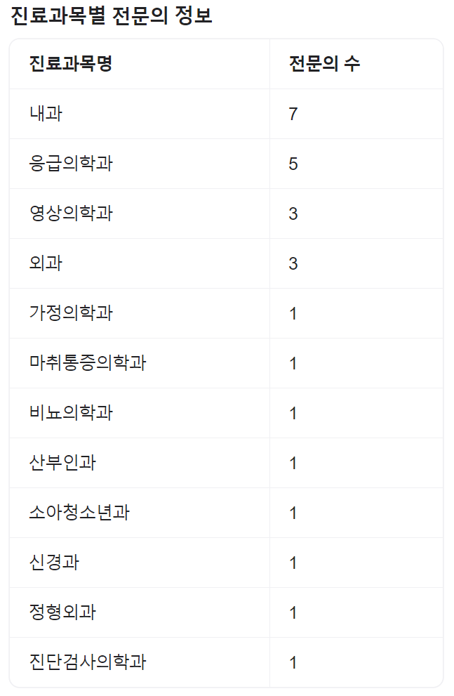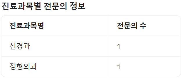 | 내과 | 외과 | 흉부외과 | 신경외과 |
