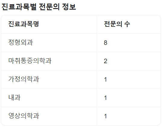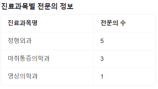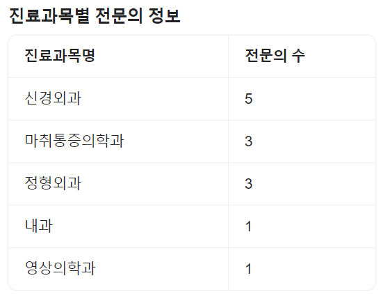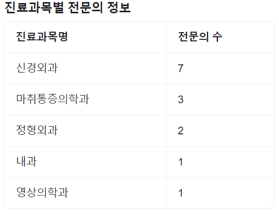 | 내과 | 외과 | 흉부외과 | 신경외과 |