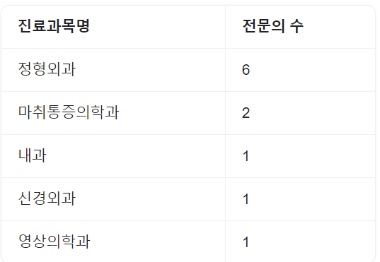 | 내과 | 외과 | 흉부외과 | 신경외과 |