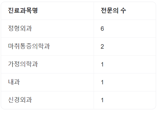 | 내과 | 외과 | 흉부외과 | 신경외과 |