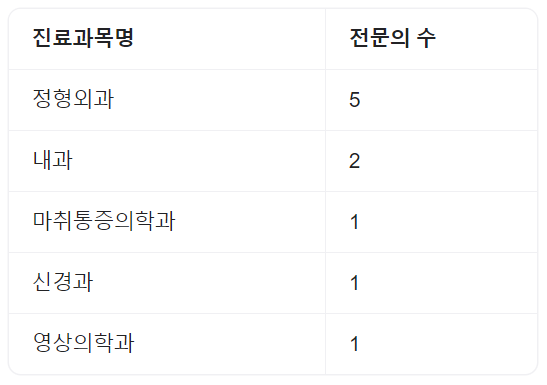 | 내과 | 외과 | 흉부외과 | 신경외과 |