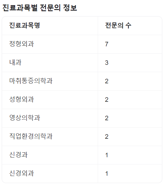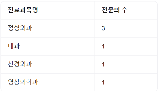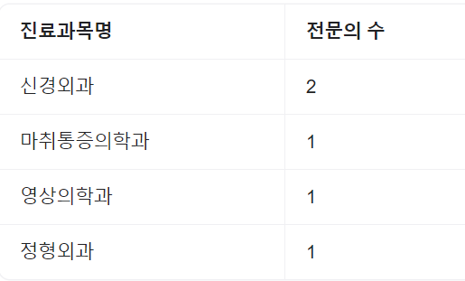 | 내과 | 외과 | 흉부외과 | 신경외과 |