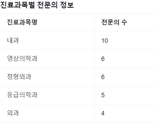 | 내과 | 외과 | 흉부외과 | 신경외과 |