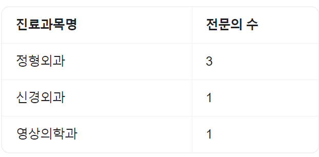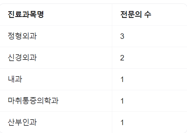 | 내과 | 외과 | 흉부외과 | 신경외과 |