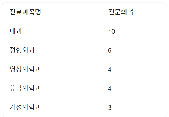 | 내과 | 외과 | 흉부외과 | 신경외과 |