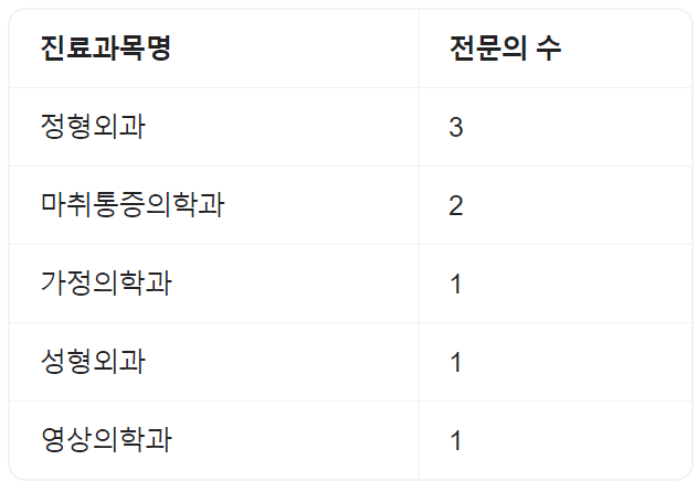 | 내과 | 외과 | 흉부외과 | 신경외과 |