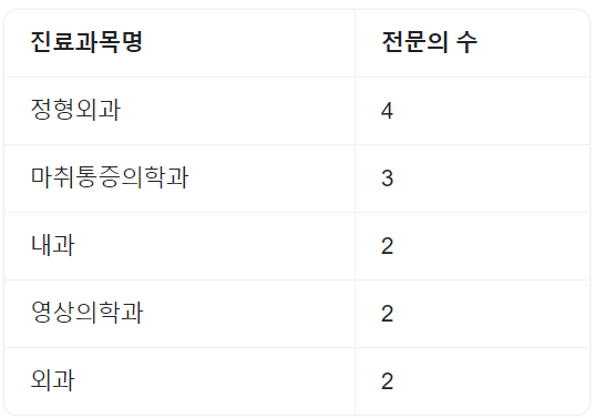 | 안과 | 영상의학과 | 정형외과 | 가정의학과 |