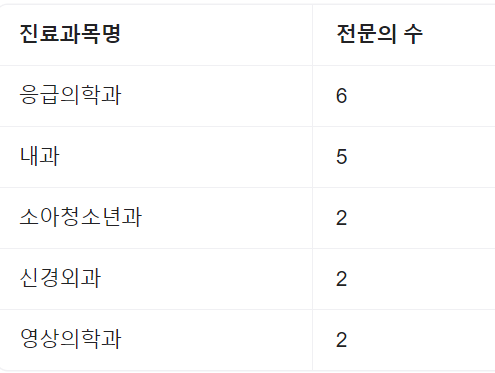 | 진료과목 | 전문의 |